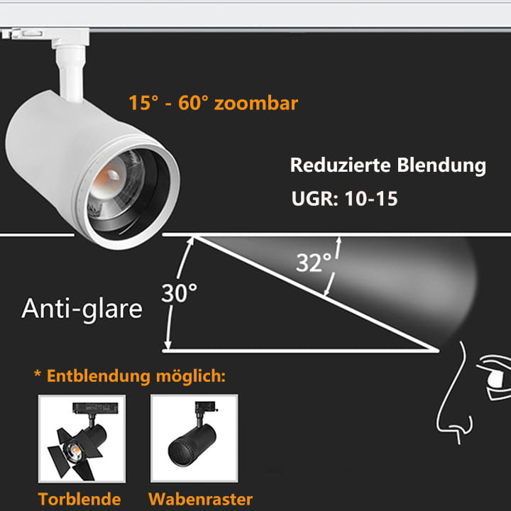 Abstrahlwinkel: 15 – 60° zoombar