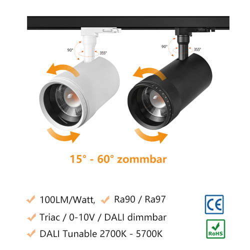 6. Hohe Farbwiedergabe, einfarbe Ra 90 oder Ra97, 2700K-5700K tunable white Ra90